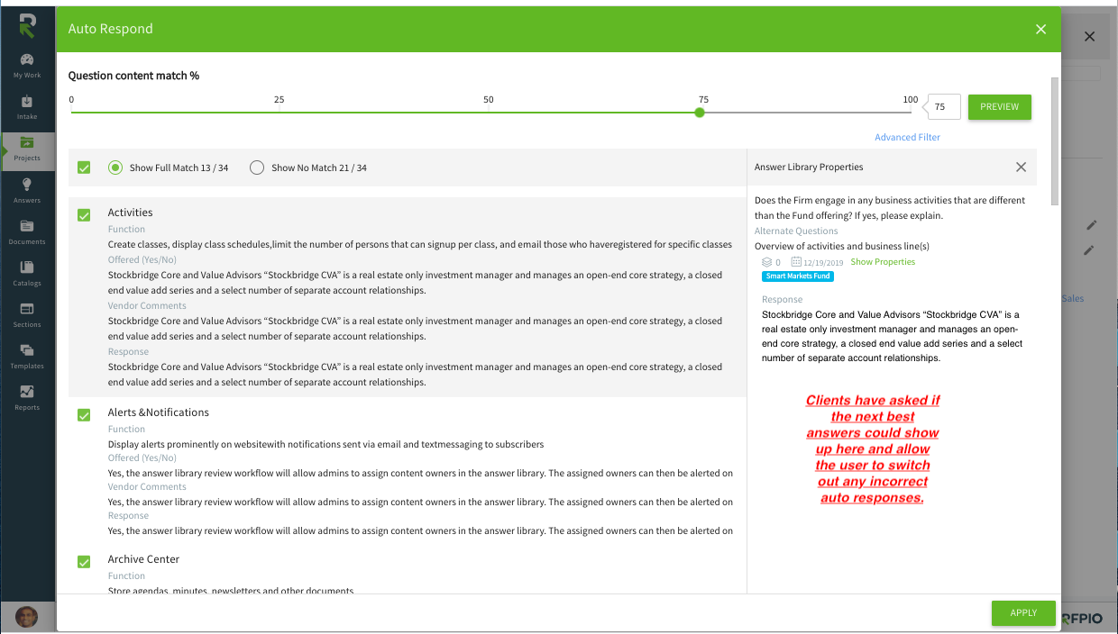The hope is if they can capture it at this step this will allow for a more efficient workflow in authoring the first round of responses.