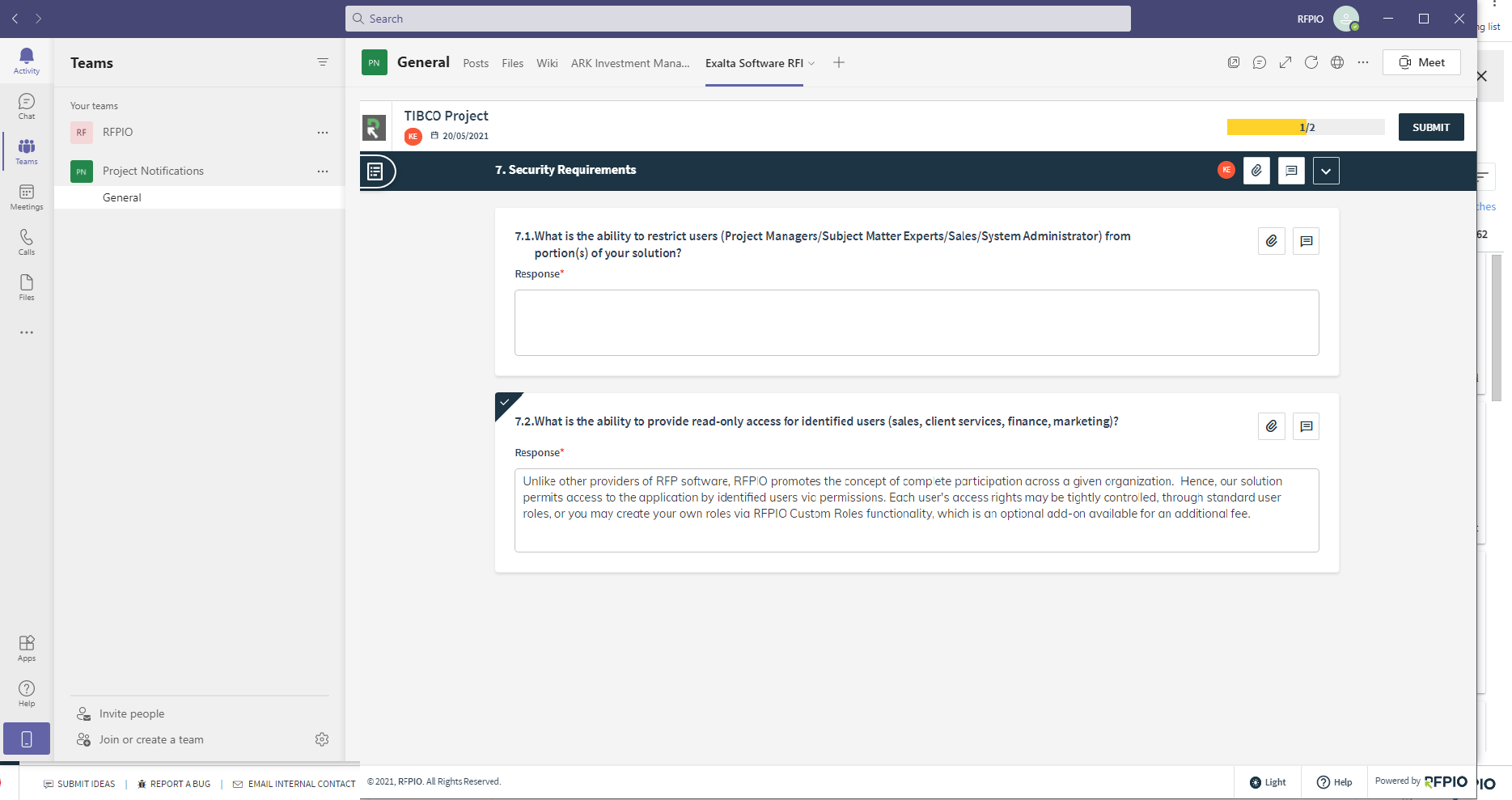 I believe that the Guest UI is so good that it will drive adoption and greater collaboration from non-habitual RFPIO users, and embedding it in Teams would make it more immediate and accessible.