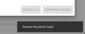 Currently, I am finding that when I delete a Q&A pair from the duplicate report, I am getting a notice in the bottom right that the deleted content is being sent to Trash.